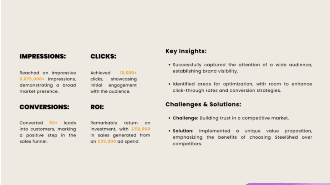 For Steelshed, a UK-based client specializing in high-quality bike sheds, I crafted a campaign designed to maximize lead generation and secure advanced bookings in a competitive market. Despite the brand’s relative obscurity compared to well-established competitors, I leveraged their unique offerings to position Steelshed as the preferable choice.